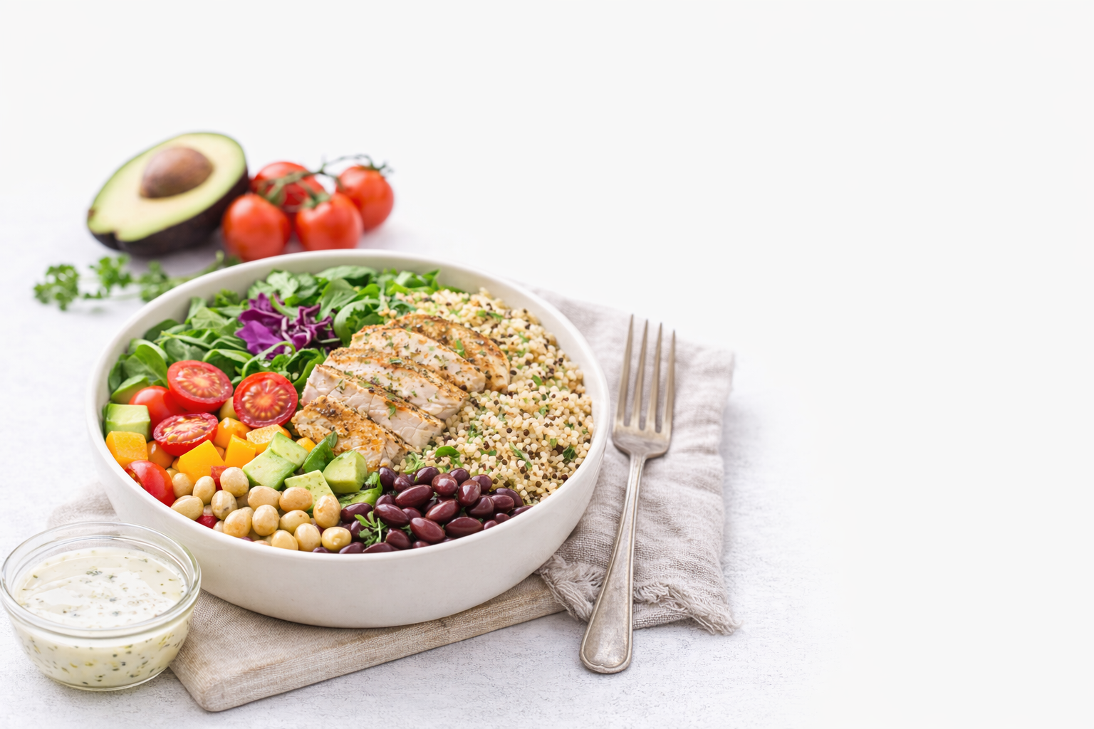 Trabajamos con ingredientes frescos y naturales todos los días. Verduras, granos y proteínas preparados al momento para conservar sabor, textura y nutrientes.